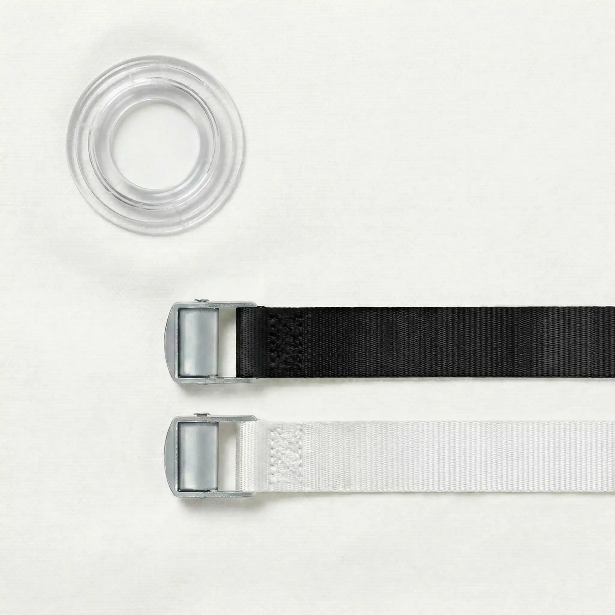 Ojales de Alta Resistencia: Sustituimos los clásicos ollaos de metal que se oxidan por ojales de policarbonato de alta resistencia. No se corroen con la lluvia, son transparentes/discretos, no interfieren con tu diseño y aguantan una tensión de tracción muy superior, evitando rasgaduras en exteriores.